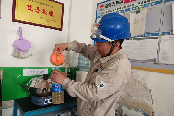 每天清晨,熬煮绿豆汤人员便开始忙碌起来,精心挑选颗粒饱满的绿豆,反复淘洗浸泡后倒入大锅,文火慢熬。随着时间的推移,锅中渐渐飘出绿豆的清香,熬煮至豆粒开花、汤汁浓稠时,再加入适量冰糖调味。熬煮绿豆汤的同时,再将茶叶用沸水冲泡,精心调配出清香解暑的茶水,一桶桶熬制好的绿豆汤和茶水,承载着公司对员工的关爱,并被及时送往各个维修作业点。