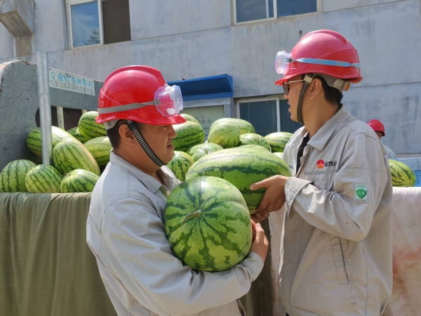 高温猛如虎,关爱深似海。公司领导把西瓜和饮料等慰问品送到员工手中,将浓浓关爱送到员工心中。公司领导对员工们致以亲切的问候,对他们在酷热的夏天坚守岗位、默默奉献致以崇高的敬意。员工们对领导的慰问如饮甘泉,信心倍增。