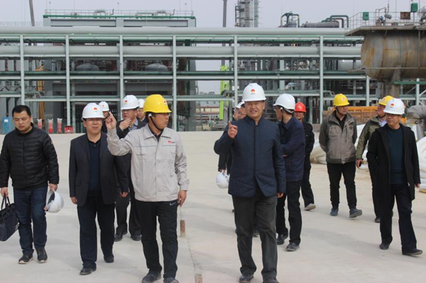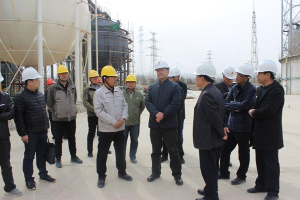 副主席马汉成一行先后到广拓化工公司重大危险源氯乙烯单体球罐、氯乙烯气柜、乙炔站料仓进行实地查看。调研中,总经理乔冠荣就片区当前生产运行、安全环保、项目建设情况及生产经营中存在的问题进行了详细汇报。