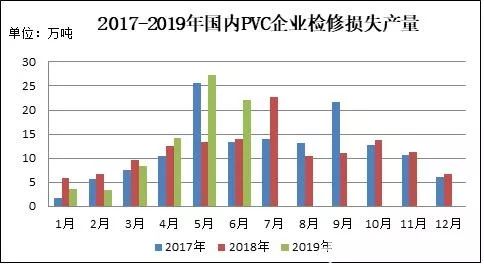 图2 2017-2019年国内PVC企业检修损失产量