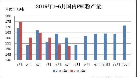 图3 2019年1-6月国内PVC粉产量