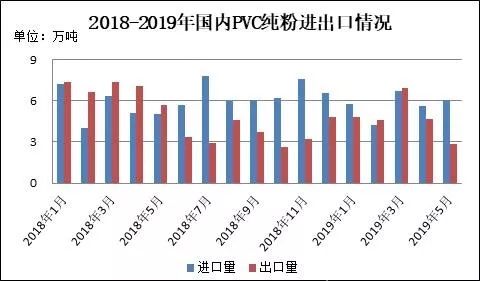 图5 2018-2019年国内PVC纯粉进出口情况