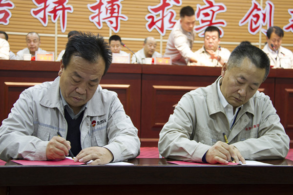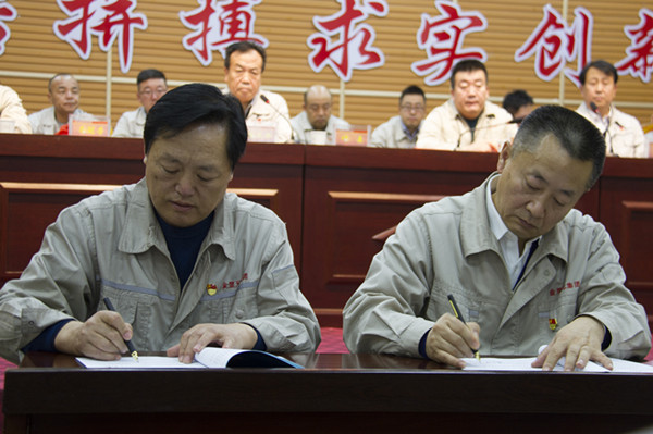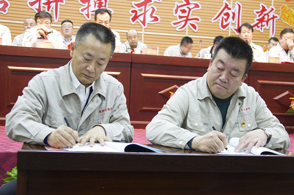 会上,集团高层领导和各主管领导以及各片区主管领导签订目标责任书。