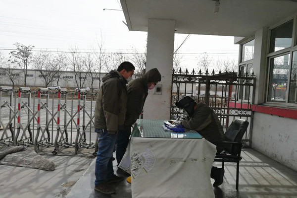 2月13日,气温骤降,在片区北大门新增检测点,由于值班室是移动房,没有暖气,刘聪俊和侯进在晚上顶着寒冷值班。尽管天气严寒,但他们依然坚守岗位,一丝不苟地对通行人员进行体温测量和信息登记,严把疫情防控关。和他们一样,所有检测点的保卫科人员都默默无闻地与疫情防控和严寒做着斗争。
