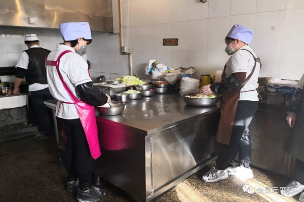 针对职工餐厅用餐,自疫情防控一开始,就停止凉菜供应,拒绝餐厅就餐,严管食堂和员工餐具,并安排党员值日,监督疫情期间食堂用餐规章制度的执行;随着疫情管控升级,更进一步强化了食堂管理,安排专人监督食材采购,实行台帐管理;岗位员工统一使用一次性餐盒,餐厅标餐配送,既避免人员聚集又方便了员工生活;为保万无一失,各党支部及时跟进餐厅管理,协调肉食采购难题,规范在正规供应点采购;各党支部、部门严格落实辖区消杀责任,定时、定人、定点执行消毒措施,从严落实围点控源措施,从源头杜绝隐患。