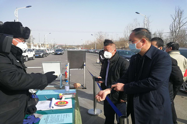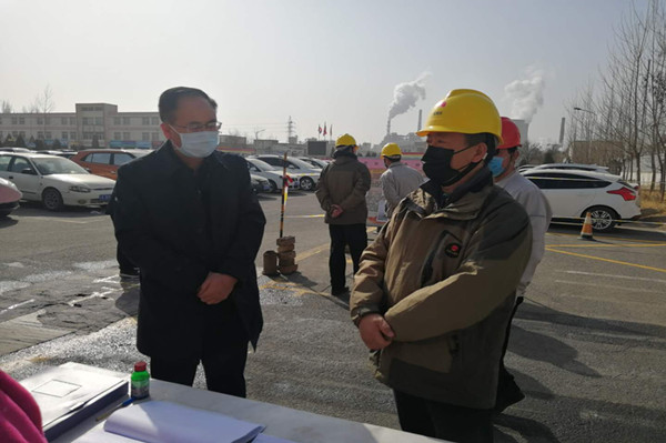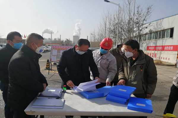 金永灵市长按常规程序进行测量体温和登记信息,并翻阅出入大门人员信息登记台账。他详细了解了集团公司疫情防控工作,总裁叶森和党委副书记兼工会主席王立军逐一回答。