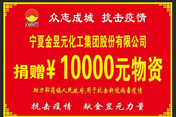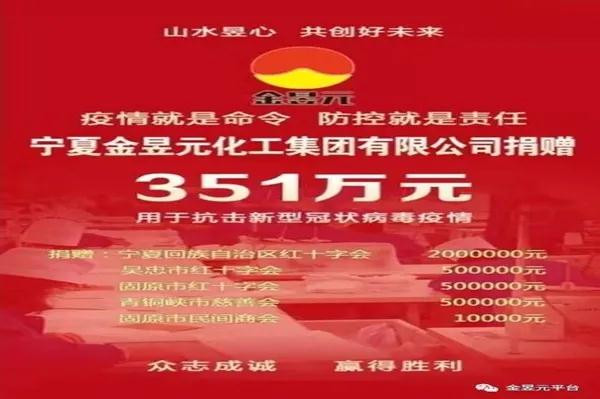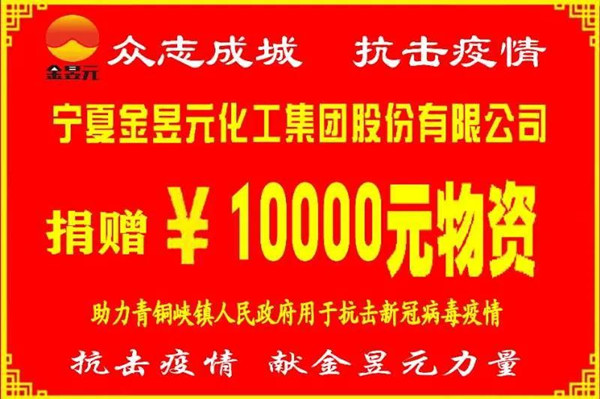 面对疫情,我们每个人都在尽自己最大的努力,金昱元也不例外。就如董事长代良云所说:“企业做得越大,就必然要去承担更大的社会责任,创造更大的社会价值。”金昱元集团也是这样做的,疫情当前,金昱元集团用实际行动践行社会责任和使命担当,向自治区红十字会、吴忠市红十字、固原市红十字会、青铜峡市慈善会、青铜峡市邵刚镇、青铜峡镇、固原市工业商业联合会共捐赠373万元。同时无偿向固原市、吴忠市、青铜峡市、灵武市、中宁县、同心县、泾源县等区内118家机关、学校、乡镇、企事业单位捐赠消毒液原液近400吨。
