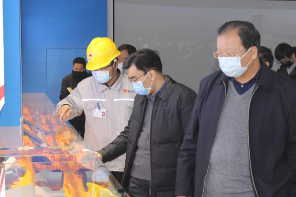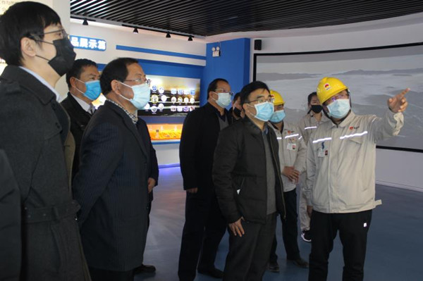 调研组先后到片区展厅、中控室、厂区进行实地查看。固原片区总经理乔冠荣就片区疫情防控、复工复产、生产经营等情况进行了汇报。调研组对片区疫情防控和复工复产工作提出问题,片区总经理乔冠荣及副总经理马建东一一解答。
