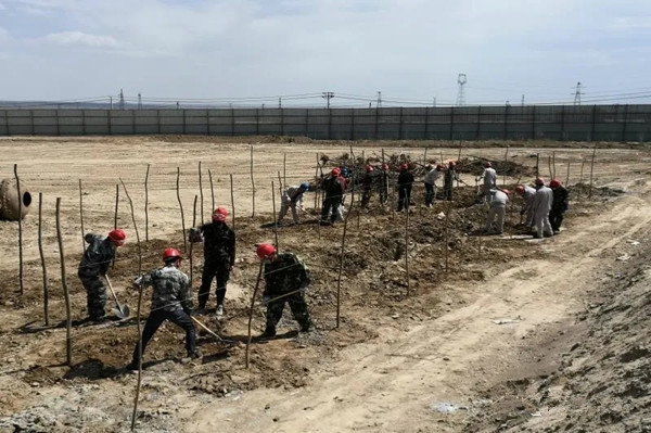 参加植树的职工一到植树现场,便投入到忙碌的工作当中,大家争先恐后挥锹挖土、放苗回填,现场一片繁忙景象。
