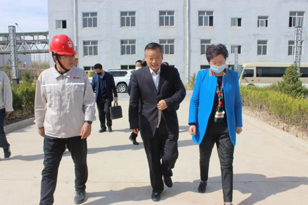 4 月 23 日下午,自治区政协副主席王紫云一行在固原市政协主席马玉芳陪同下,莅临固原片区调研。集团公司副总裁兼固原片区总经理乔冠荣、广拓化工公司总经理贾存富陪同。