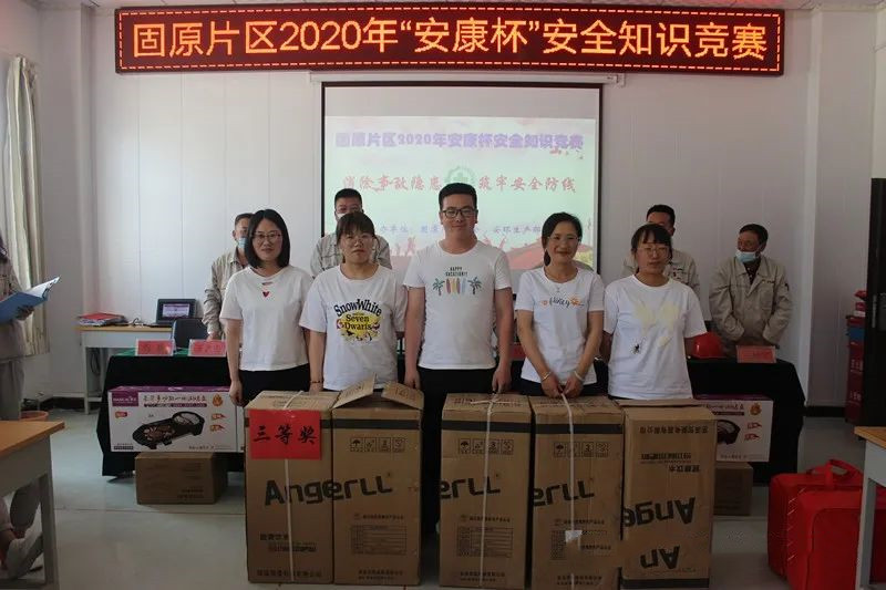 固原片区实行现场答题竞赛,共有6支代表队参加竞赛,每队由5名队员组成,竞赛设必答题、图表分析题、抢答题和观众互动四个环节。6支代表队你追我赶,十分激烈,选手们精彩的竞答不时赢得场下观众阵阵喝彩。过经3个小时的激烈角逐,最终炔烃节能公司代表队获得固原片区竞赛第一名。