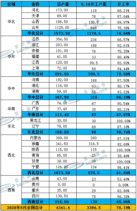 截止9月10日,中国氯碱装置开工情况如下图: