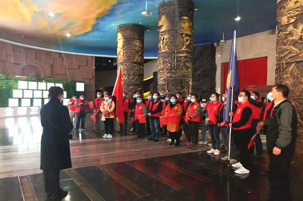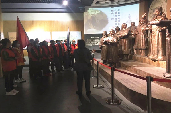 党旗与金昱元旗帜高高飘扬,党员们身着红色志愿者马夹,手持五星红旗,排着整齐的队伍接受防疫检查。展览厅里,大家认真聆听古灵州历史文化、吴忠革命史讲解,或驻足细心观赏历史文物,或三五一群交流体会。大家悉心领略地方文化史,回顾红色历史,缅怀革命先烈,汲取前行力量。恰逢明年是中国共产党建党100周年和金昱元集团建企30周年,全体党员重温了入党誓词,党支部书记向全体党员分享了30年来企业沐浴改革开放春风,在建设、改革、发展过程中的故事和取得的成就。