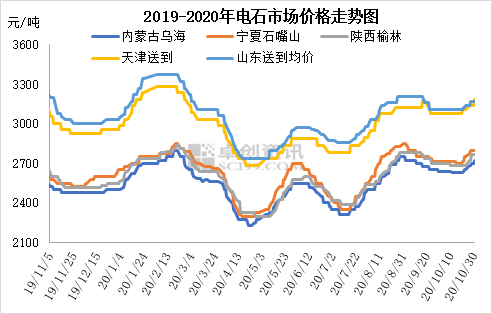 10月西北地区电石开工不稳定,主要是限电或是电石炉临时检修、生产不正常现象屡有发生。电石企业前期出货不稳,下半月出货顺畅,出厂价格重心持续上移,涨幅在100-150元/吨不等。截至10月底各地电石出厂价格为:内蒙古乌海地区电石贸易出厂价在2800元/吨,给固定下游核算出厂价在2650-2750元/吨上下;宁夏石嘴山地区电石主流出厂价2750-2850元/吨;陕西地区出厂2700-2840元/吨;甘肃地区2850-2900元/吨。