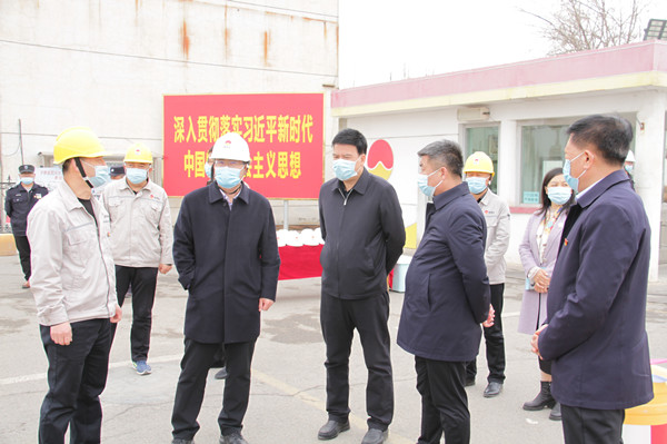 调研组深入一线,了解集团公司疫情防控情况,并聆听工作人员宣读《入厂安全教育》。