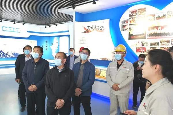 肖生勤一行先后到片区展厅、中控室进行实地参观。片区副总经理贾存富就片区循环经济产业链、生产经营、安全环保、职工就业、社保缴纳、减税降费政策落实等工作做了详细汇报。