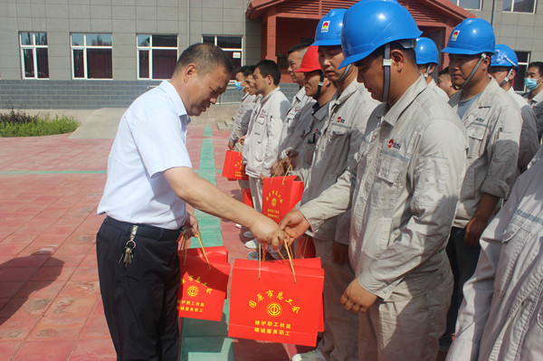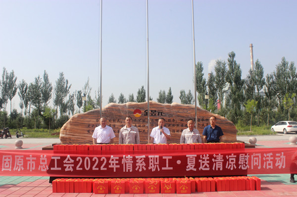 7月8日上午,固原市总工会常务副主席王志贤、开发区总工会常务副主席罗天、开发区管委会规划建设局副局长海滨一行,莅临球王会网页固原片区,为坚守在生产一线的员工送来防暑降温用品。