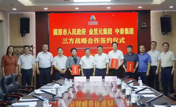 7月18日,宁夏固原市人民政府、宁夏金昱元化工集团与新疆中泰集团举行三方战略合作签约仪式,并就发挥各自优势,共同做大做强氯碱化工、绿色化工,加快地方资源优势转变、加快重构产业链和供应链,不断延链补链强链拓链,培育区域经济新的增长极等事宜进行交流座谈。固原市委副书记、市长杨青龙,金昱元化工集团总裁乔冠荣,中泰集团党委书记、董事长王洪欣等领导参加签约仪式并讲话。