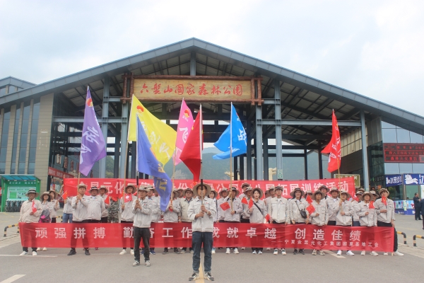 早晨8:30,参加拓展训练人员从公司东门口集合出发,乘坐旅游巴士一路欢歌,共赴六盘山森林公园,沐浴绿野清风,与六盘山水来一场久违的约会。