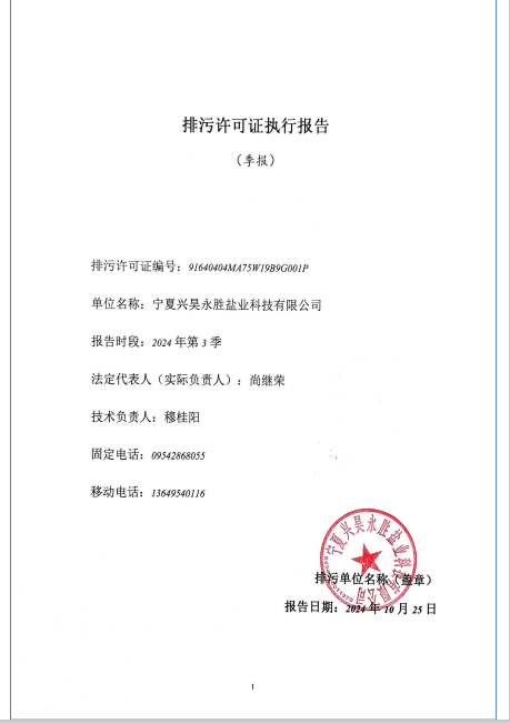 宁夏兴昊永胜盐业科技有限公司2024年第3季度排污许可执行报告
