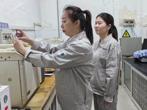 重岗受任,不辱使命。2012年,妥玉英被调到分析岗位,这一干,就是13年。在分析岗位上,她对待取样、分析、复检等工作一丝不苟。她的专注就像一位技艺精湛的工匠对待自己的作品,不容许有丝毫瑕疵。慢慢地,凭借过硬的专业技能,她从一名普通的分析工成长为分析班长。自此,她深知自己肩上的担子和责任更加重大。她明白,要当好班长,带好队伍,必须做到更加“高”“精”“专”。于是,查书籍、勤琢磨、多对比成了她攻克技术难关的诀窍。她如同一只勤劳的蜜蜂,脚勤、嘴勤、脑勤,在班组里树立了模范标杆,同时带出了一支作风过硬的分析化验队伍。