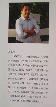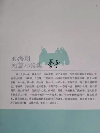 在文学日益式微的今天,仍有一些虔诚的信徒坚守在文化创作的金牧场。现供职于宁夏金昱元化工集团有限公司的孙海翔,二十年如一日始终在青铜峡市这片热土上坚持着他的文学梦想。历时半年,短篇小说集《拳手》终于出版。这是青铜峡市作家孙海翔出版的第一部书,共收入28篇短篇小说。