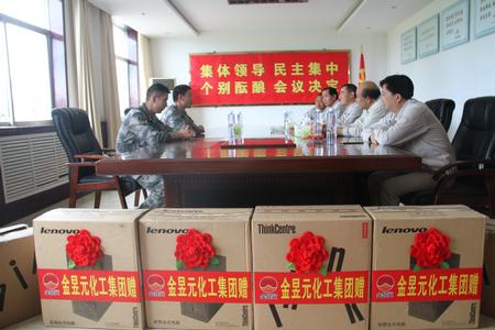 在中国人民解放军建军90周年来临之际,7月28日、31日,宁夏金昱元化工集团有限公司青铜峡片区慰问组冒着酷暑,走访慰问了本地驻防的两支部队,为部队官兵送去价值近3万元的慰问品和节日的问候;固原片区慰问组走访慰问了固原市消防支队并送去慰问品,双方开展了警民联谊活动。感谢他们为地方社会经济发展和安全稳定所做出的贡献,并共同畅叙军企之间的鱼水情谊。