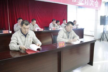 会上,集团公司董事长代良云与集团公司各主管领导,各主管领导与分管部门负责人相继签订了2018年经营管理、职能管理、安全环保管理目标责任书,各级管理人员分别签订了《依法遵章、廉洁履职承诺书》。